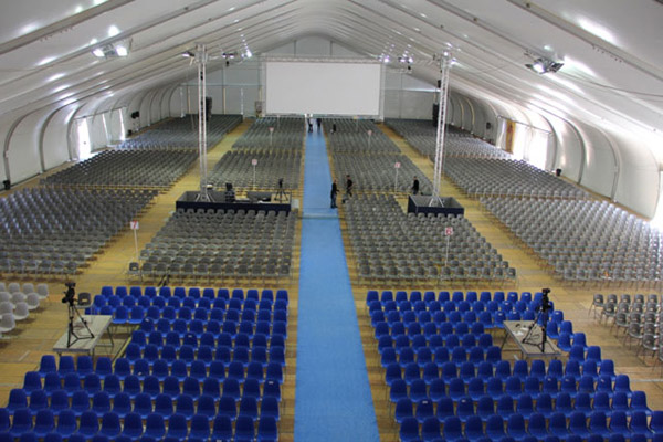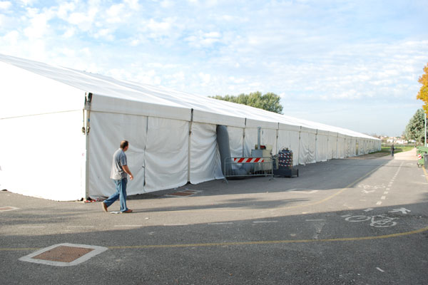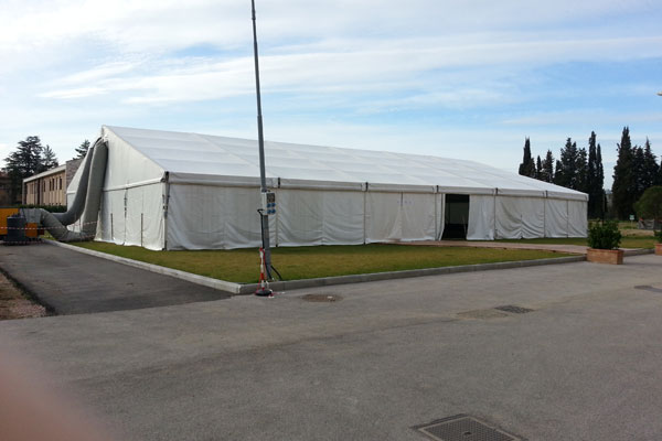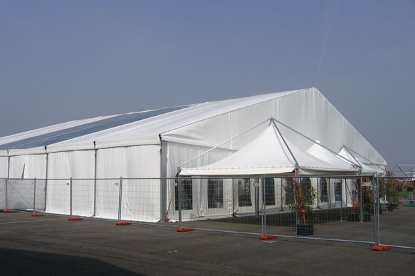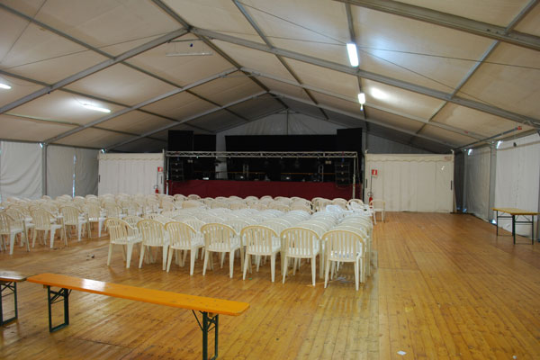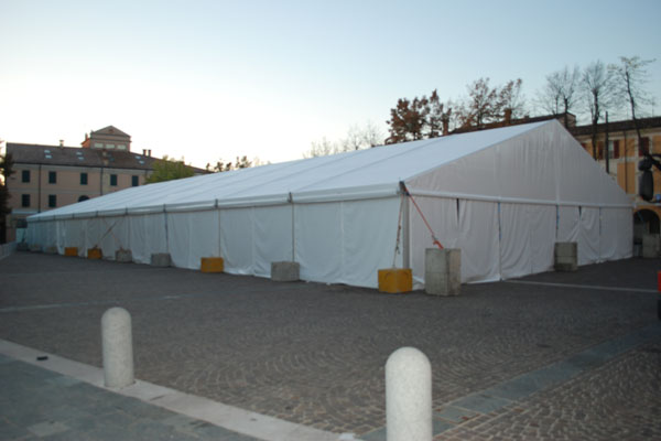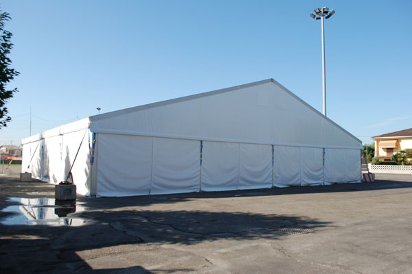 Noleggio e montaggio capannoni. Capannoni modulari per eventi in spazi ampi e confortevoli. Ideali per un utilizzo come magazzino. Struttura in alluminio, sono modelli a due pendenze con copertura in p.v.c. impermeabile, ignifugo di colore bianco accompagnato da relativo certificato. Le strutture hanno frontali da metri 10, metri 15, metri 20, metri 30. Tutto il nostro materiale è accompagnato da calcoli statici e collaudi annuali.